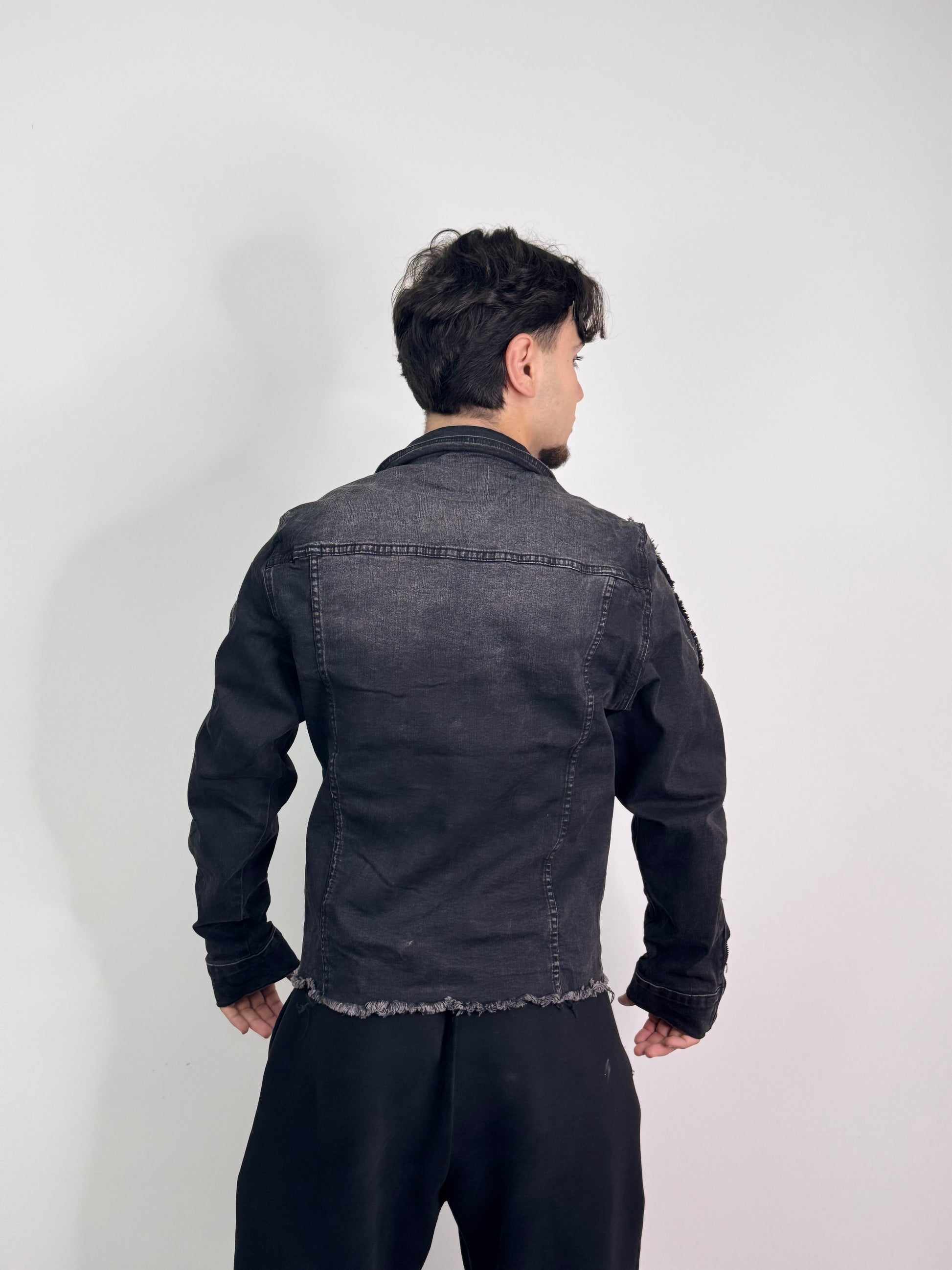 Giacca in denim nero con texture morbida e fit sapientemente calibrato per una silhouette moderna e lusinghiera. La costruzione in cotone di qualità superiore garantisce durabilità nel tempo, mentre il design essenziale la rende un capo fondamentale per il layering. Perfetta per chi ricerca un pezzo versatile che eleva qualsiasi outfit, dal casual al semi-formale, con eleganza senza sforzo.