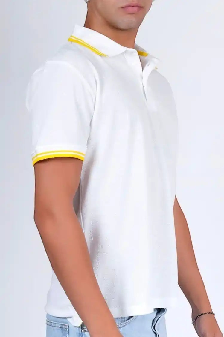 Polo in piquet, capo essenziale dalla vestibilità impeccabile e costruzione raffinata. I dettagli gialli conferiscono carattere e freschezza al design classico, mentre il tessuto piquet garantisce struttura e traspirabilità. La silhouette calibrata si adatta elegantemente a diverse morfologie, assicurando comfort durante la giornata. Un fondamentale versatile per il guardaroba maschile, ideale sia in contesti casual che semi-formali.